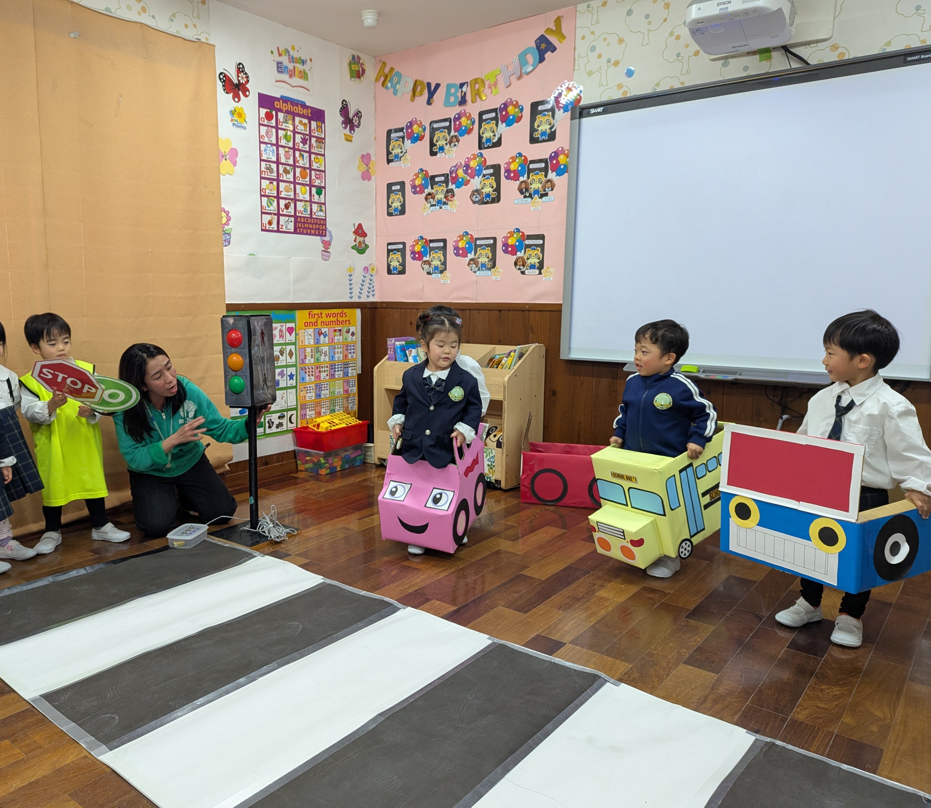 年少さんのSocial Studiesの時間に、交通安全(Traffic Safety)について学びました。
