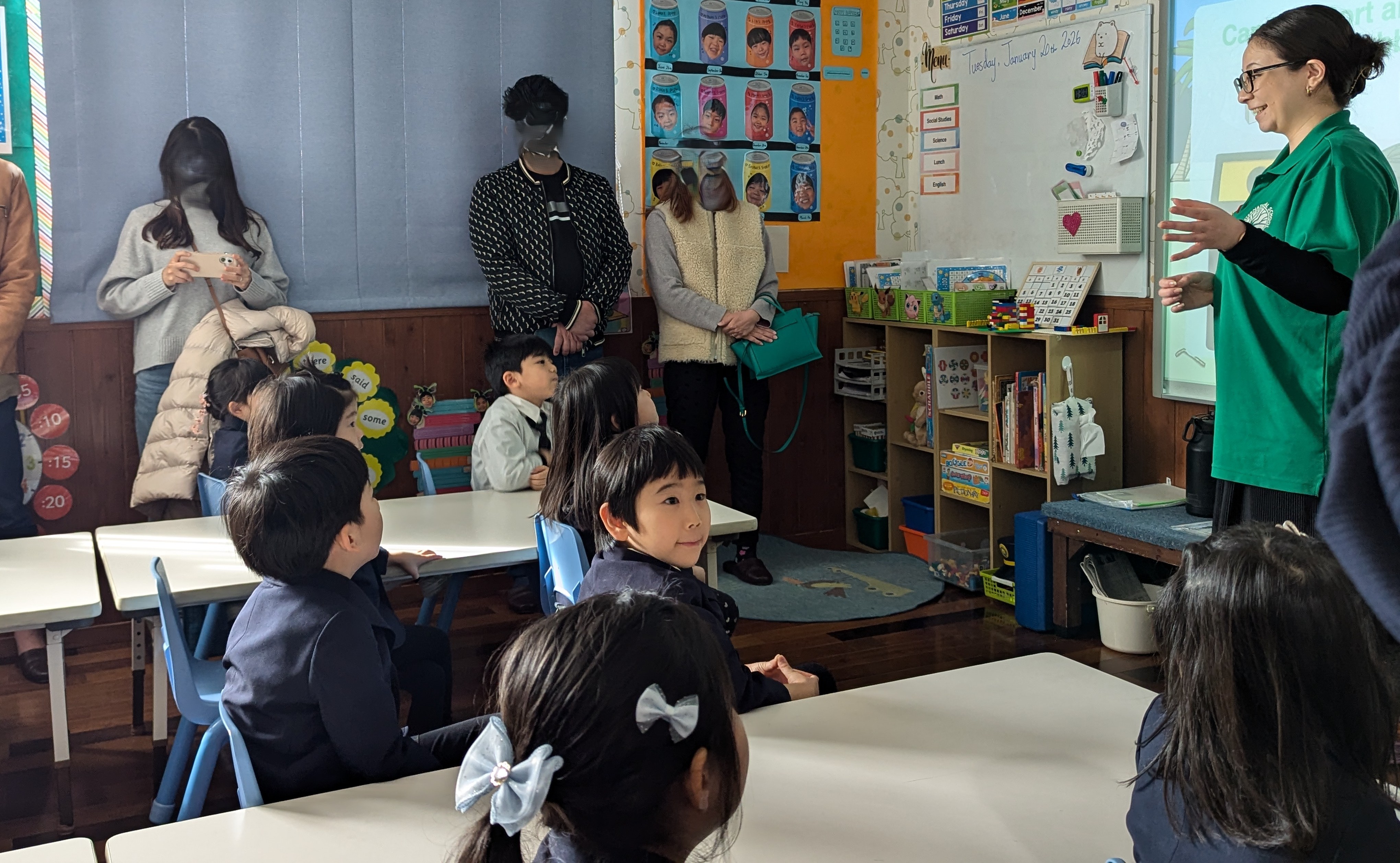 classでは、子どもたちが普段どのように英語でやり取りをし、レッスンに取り組んでいるのかをご覧いただきました。