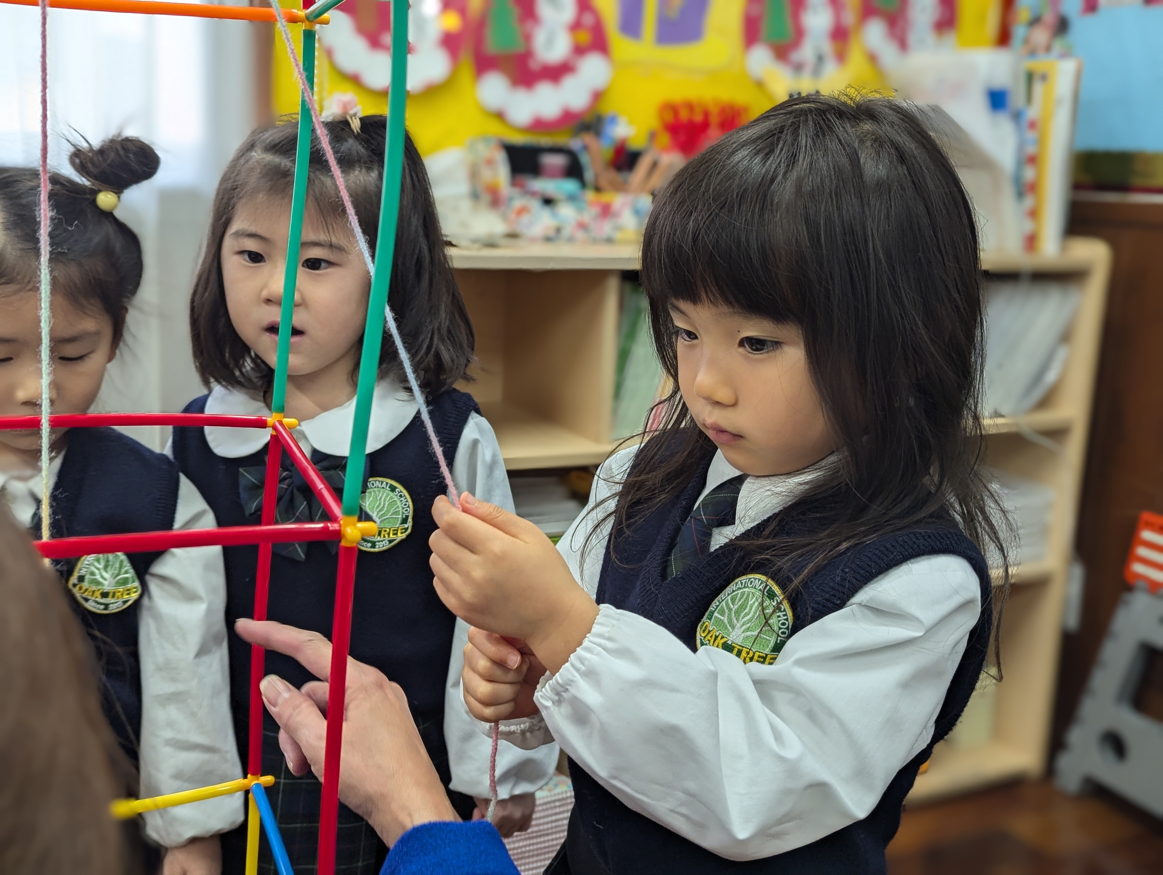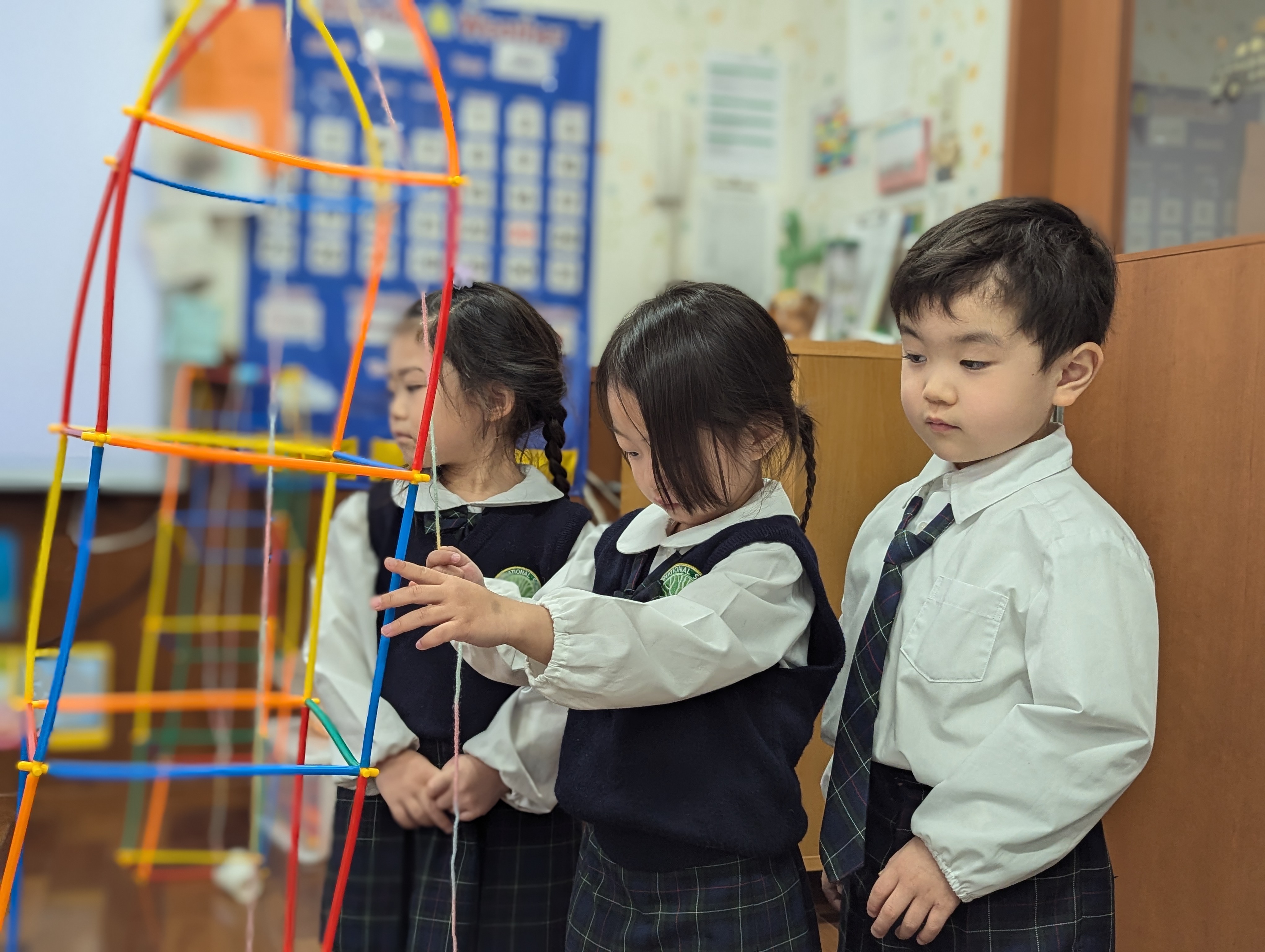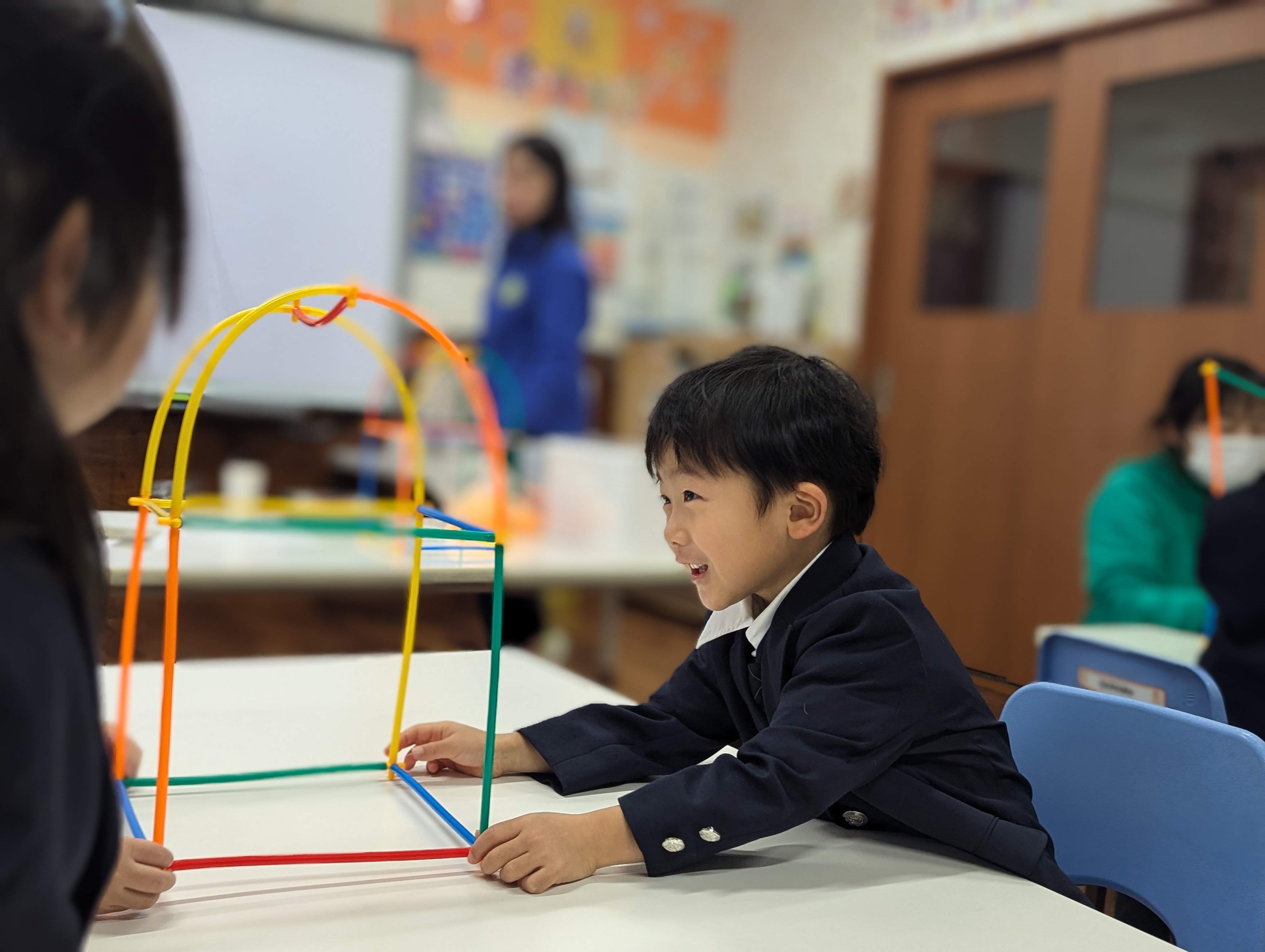 「もっと高くしたい!」「It’s going up!」と、目を輝かせながら何度も挑戦する子どもたち。
