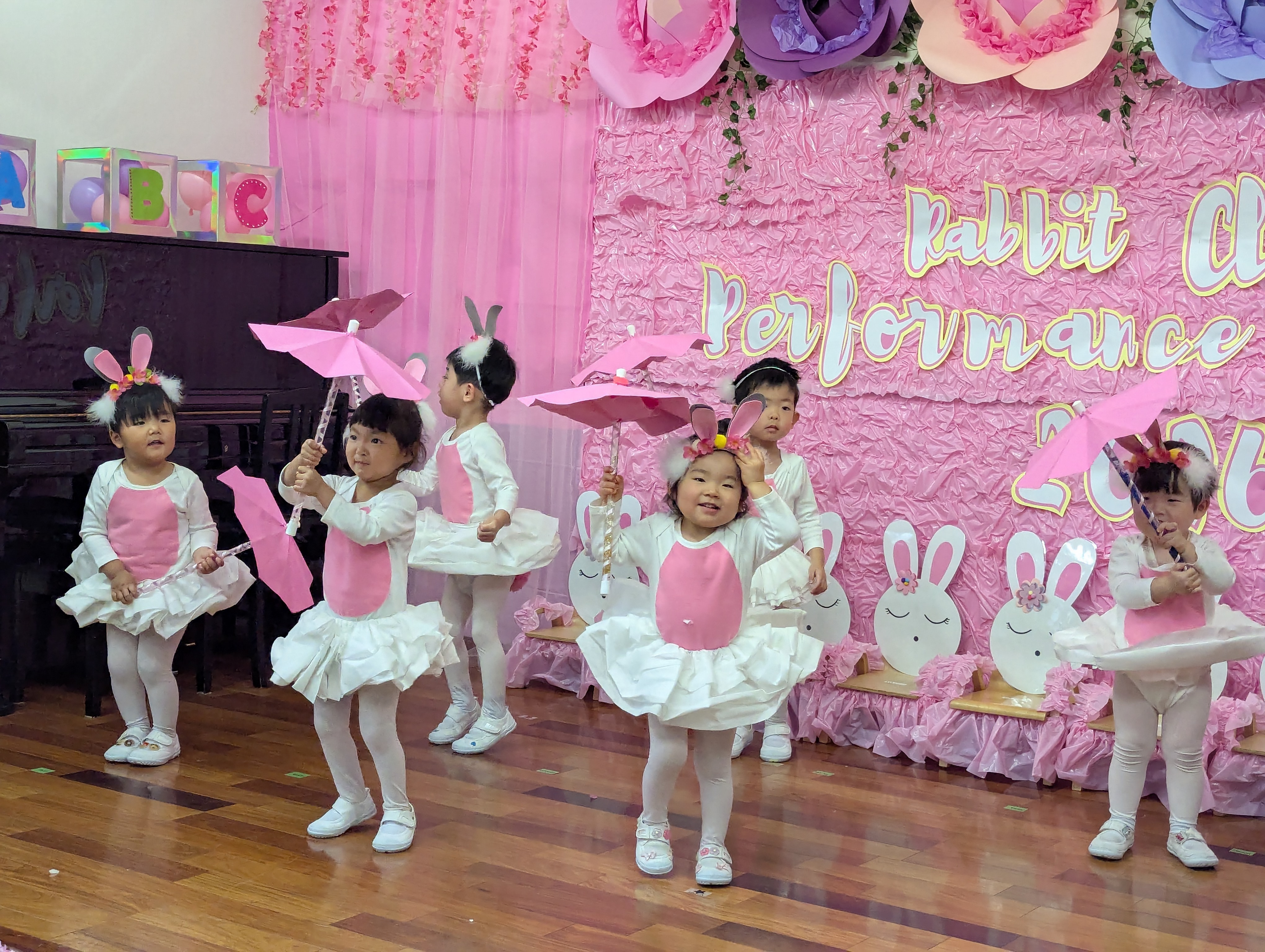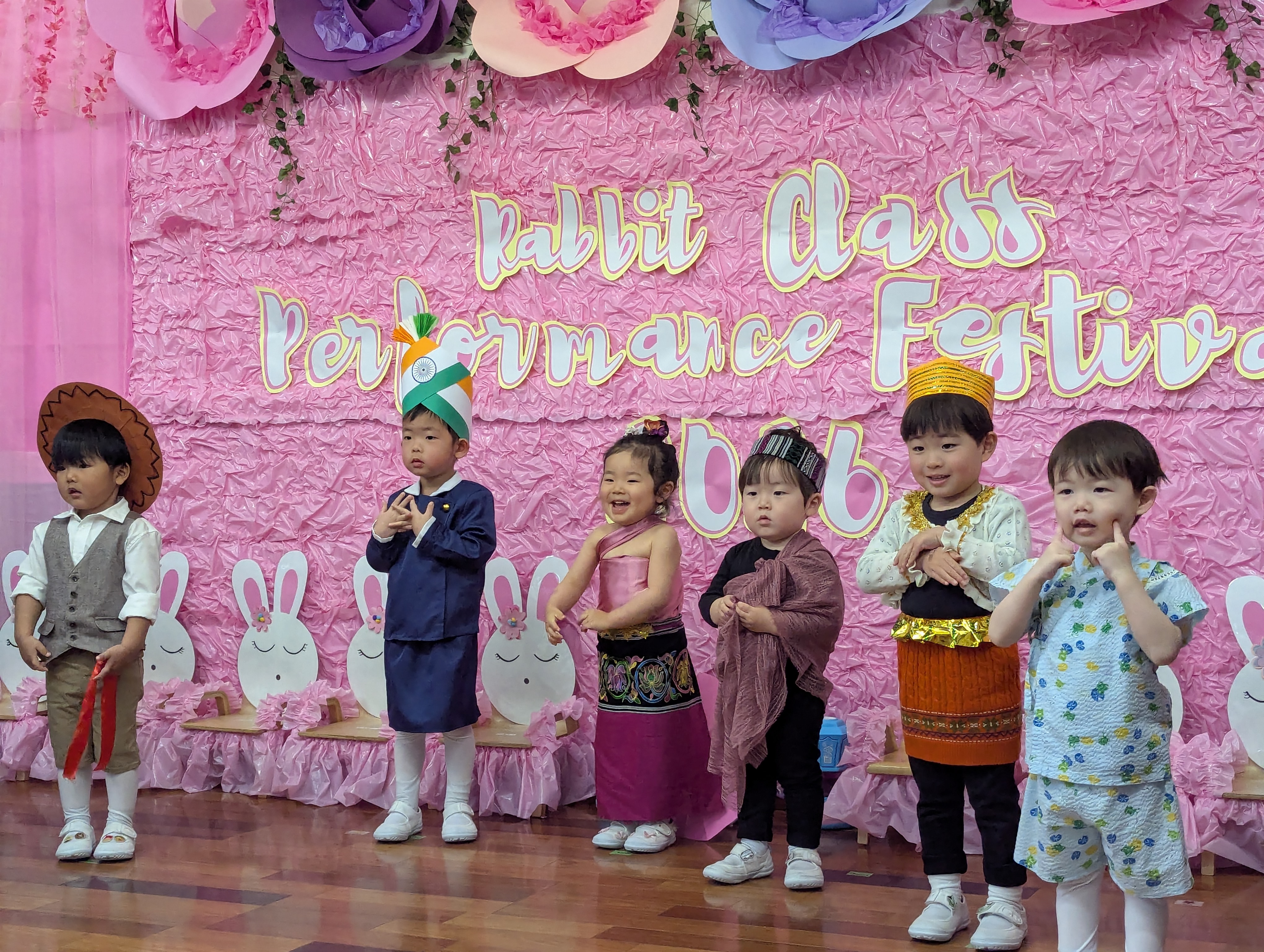 Rabbitクラスの生活発表会では、2曲のパフォーマンスとセリフに挑戦しました。