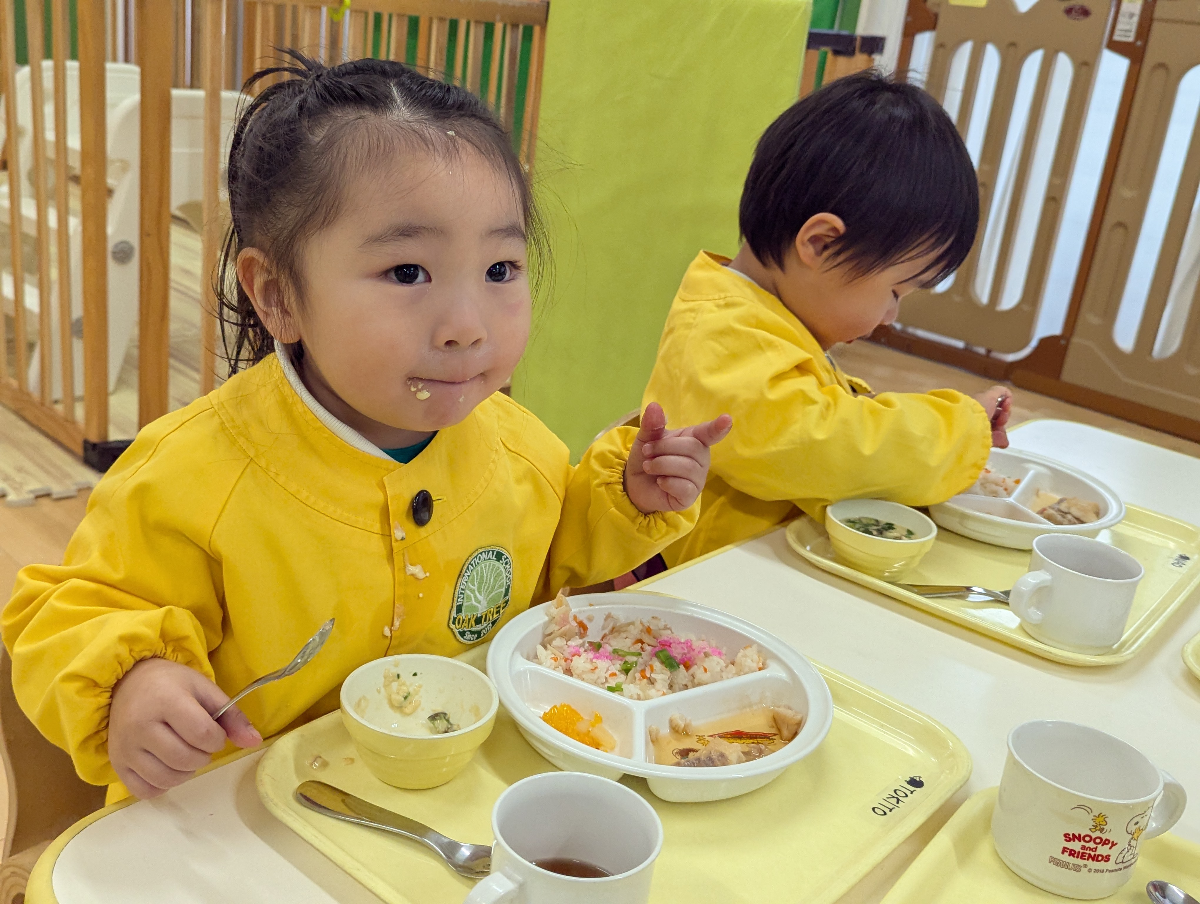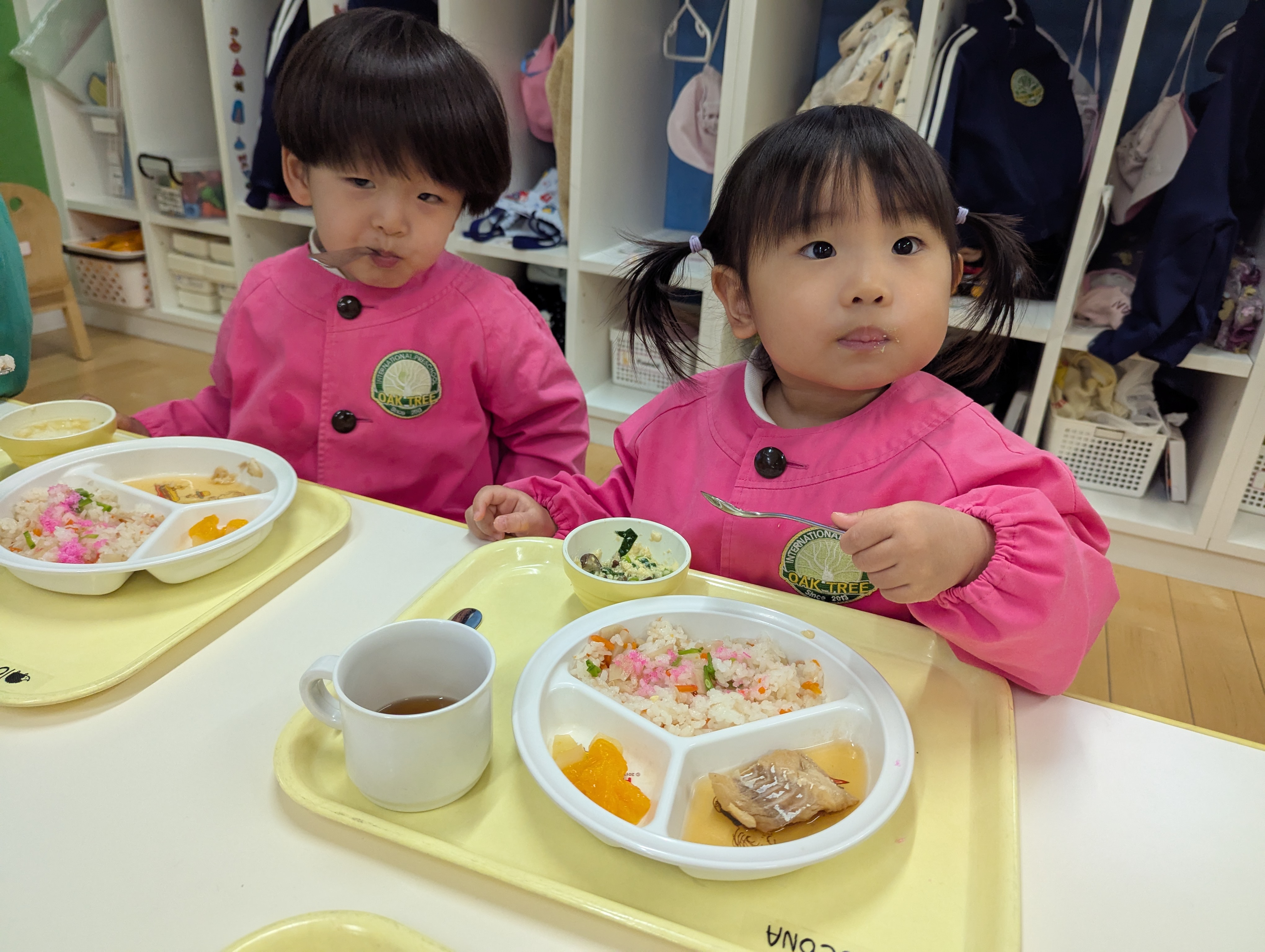 今日のPlayスクール手作りお給食は、ひな祭りにちなんだ特別メニューでした。
