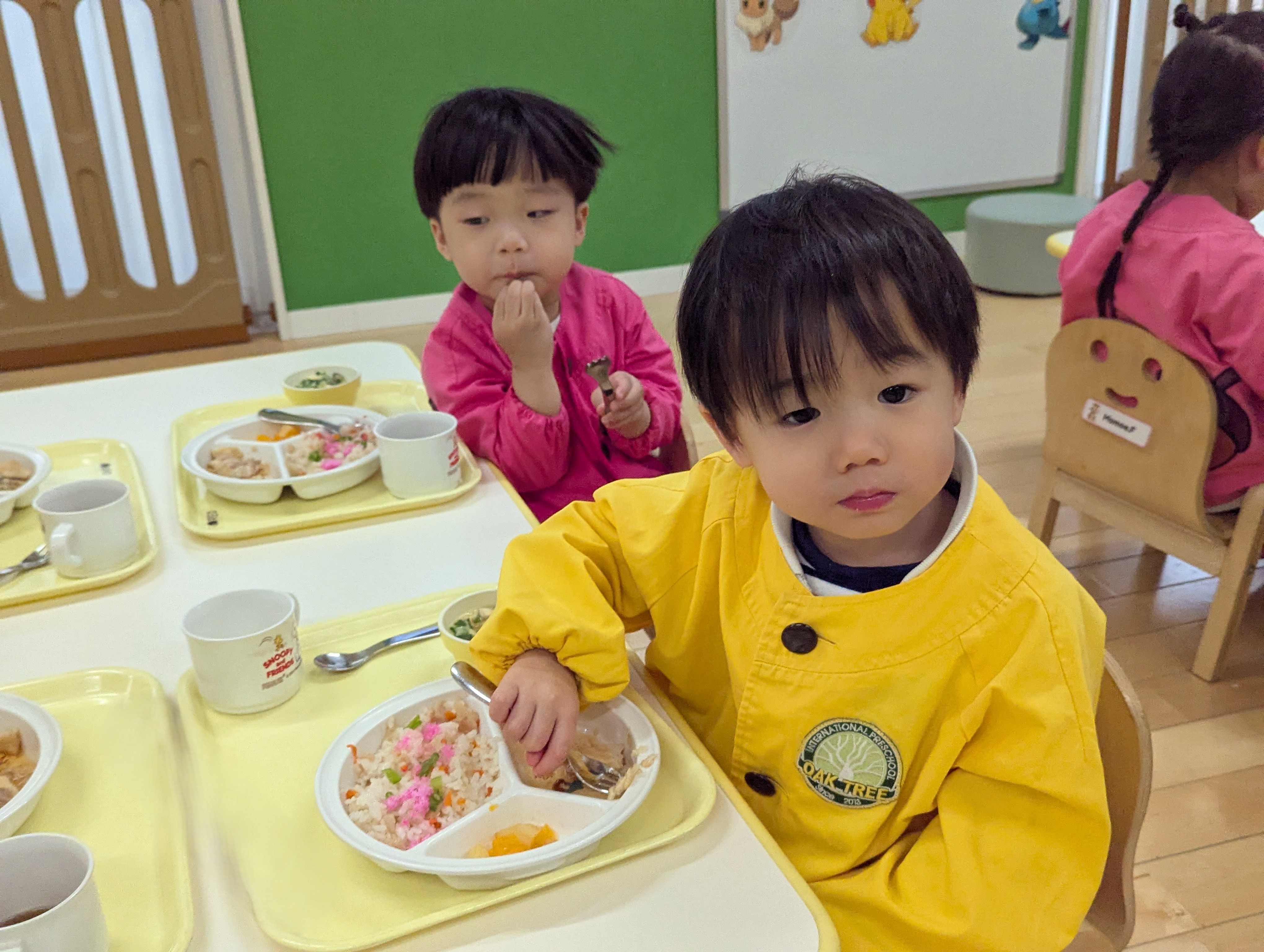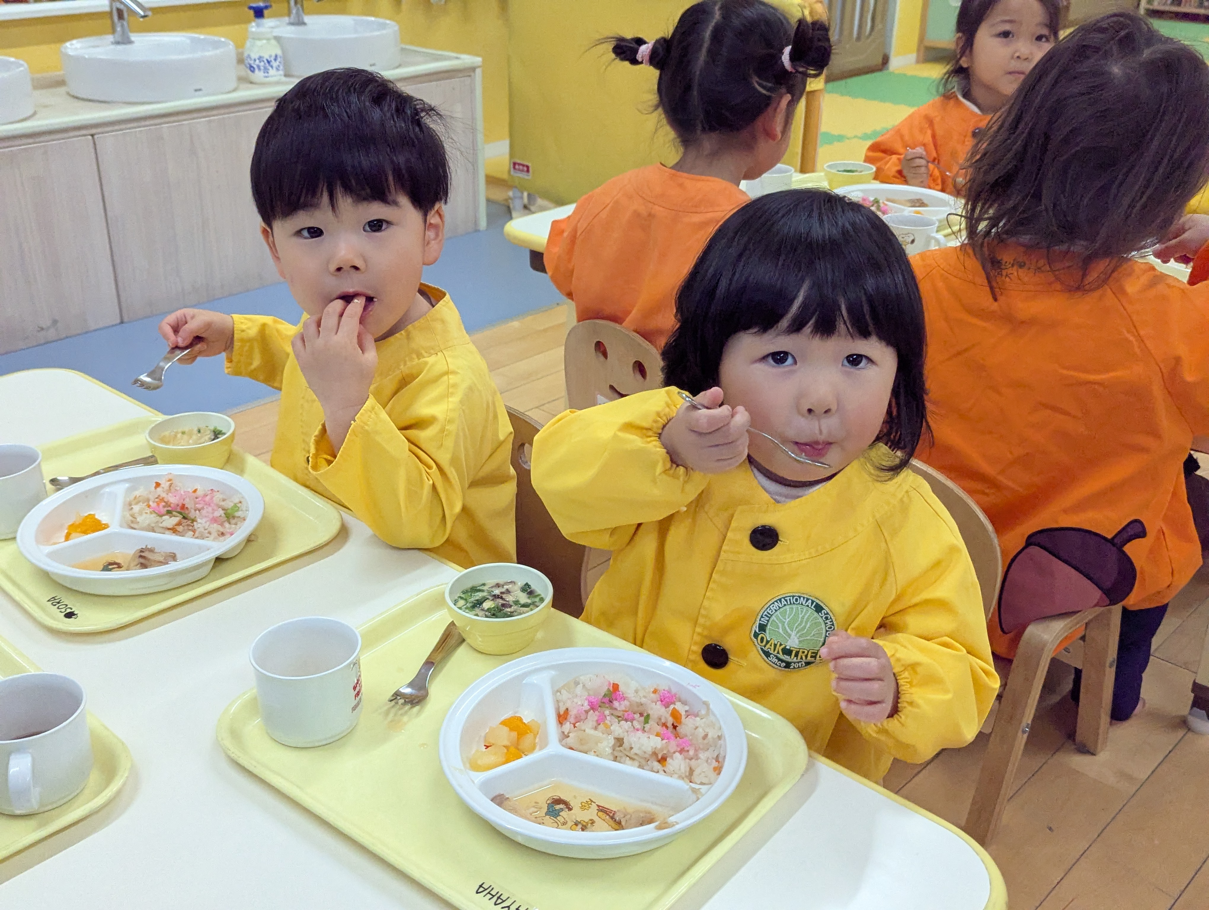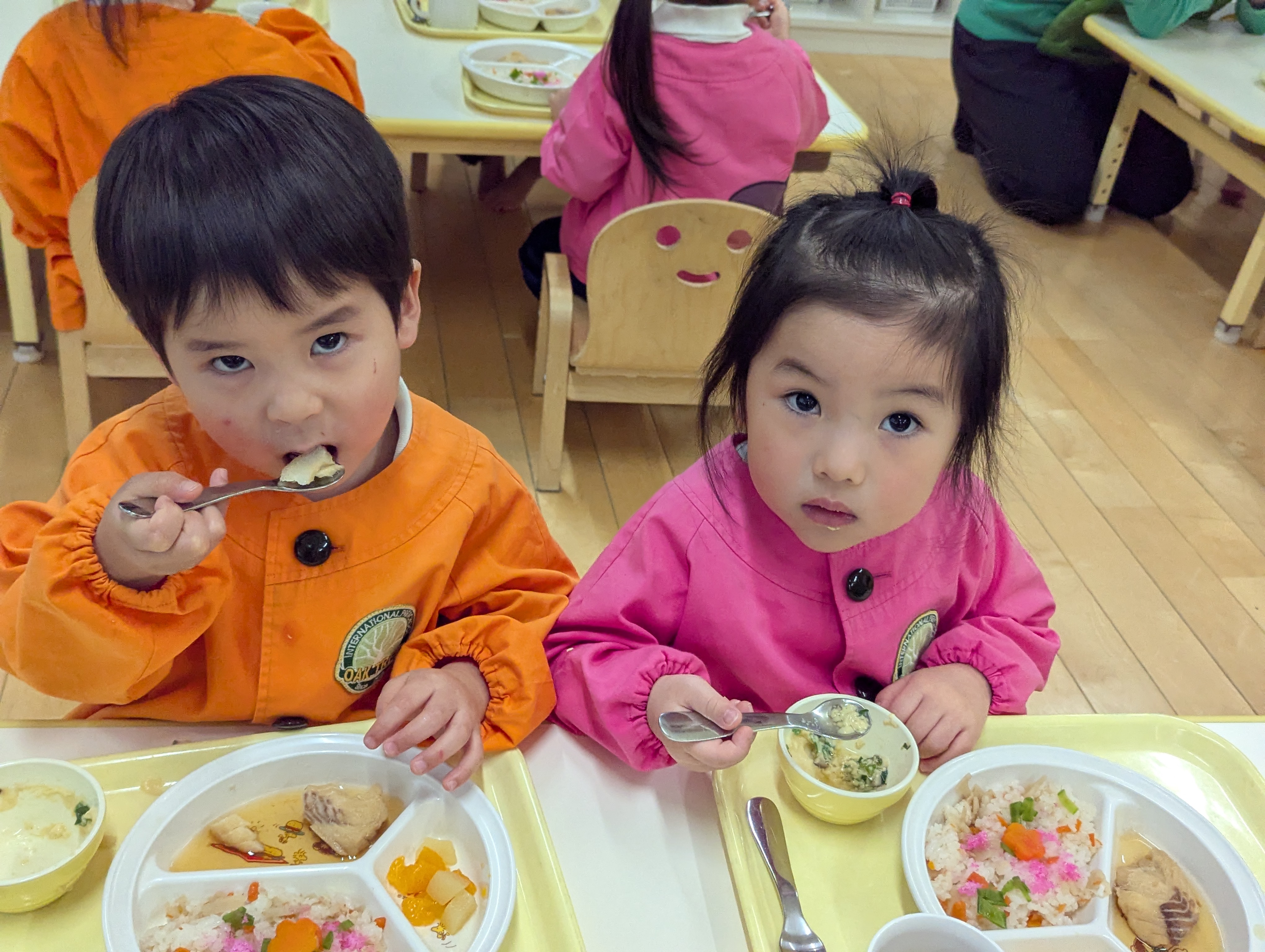 季節を感じられる献立に、子どもたちも「きれい!」「おいしそう!」と嬉しそうな表情を見せてくれました。
