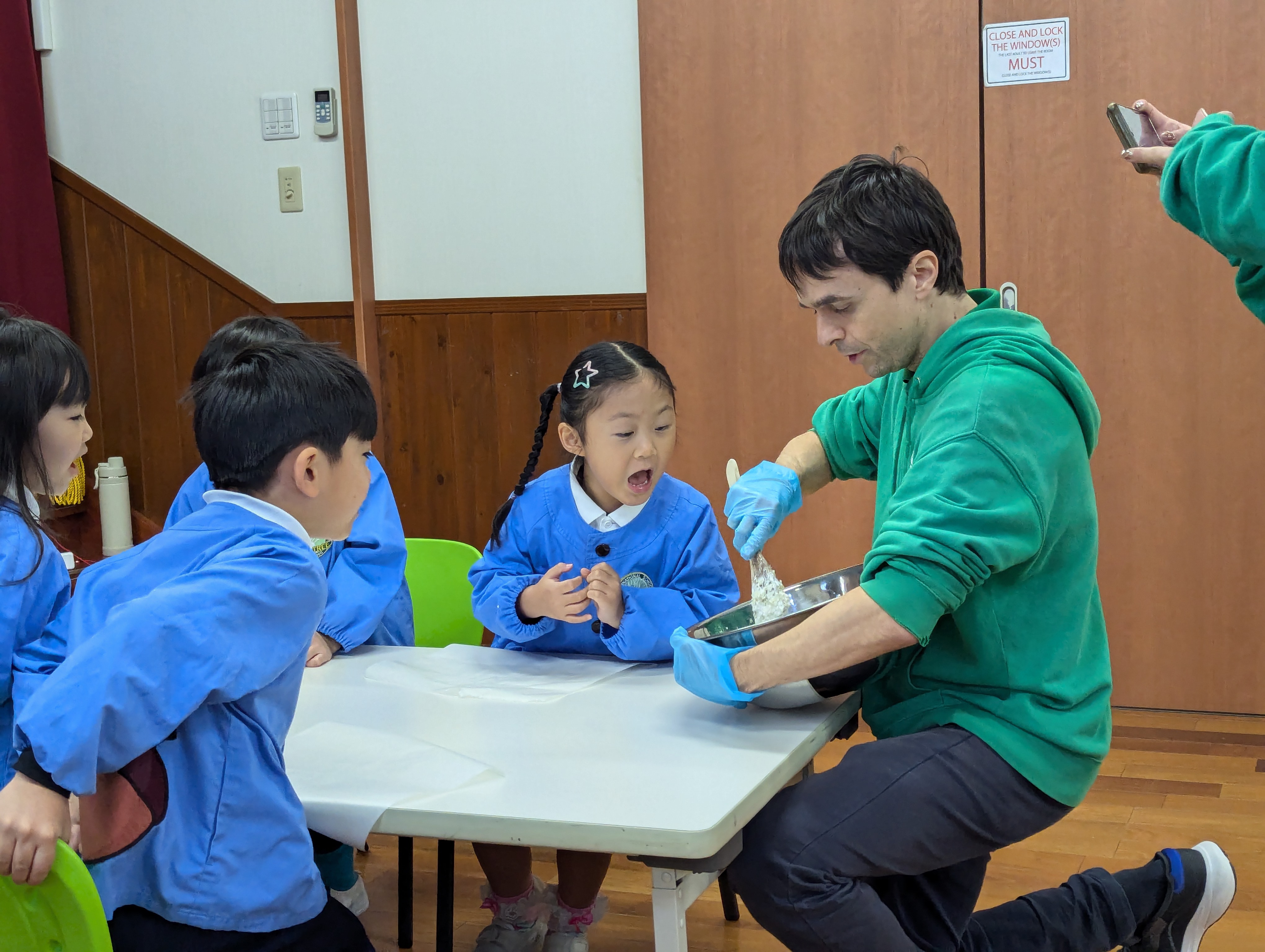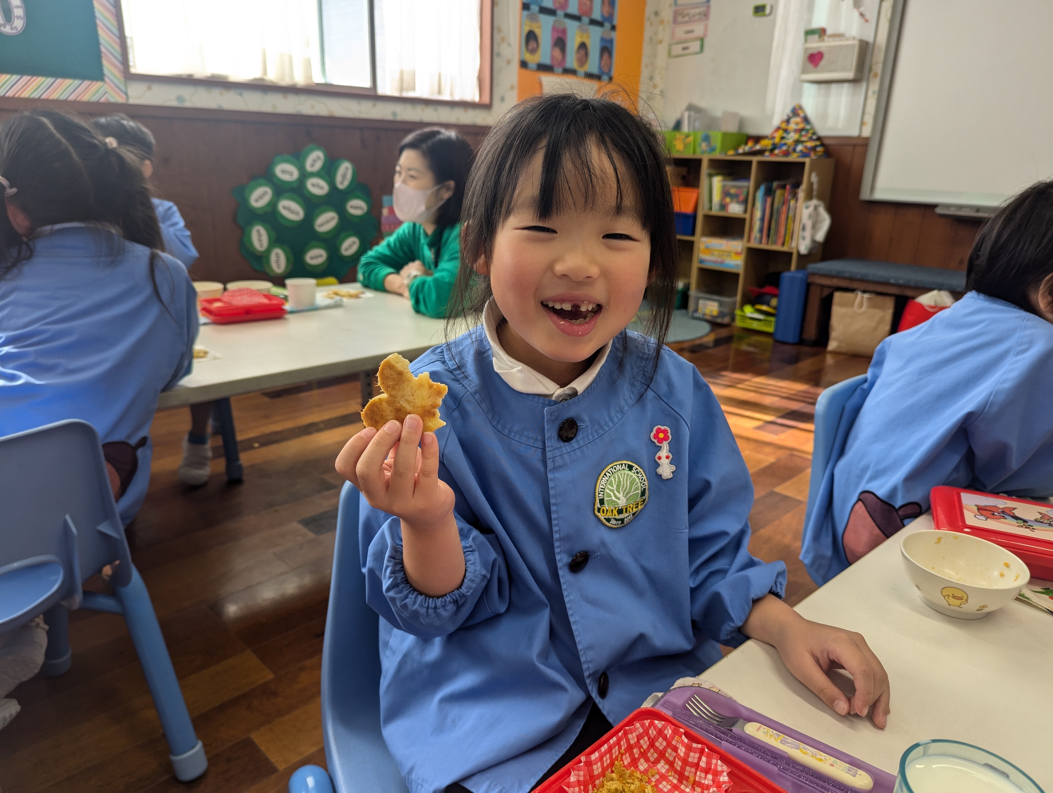 お部屋いっぱいに広がる甘い香りの中、「It’s yummy!」「I made it!」と笑顔があふれていました😊