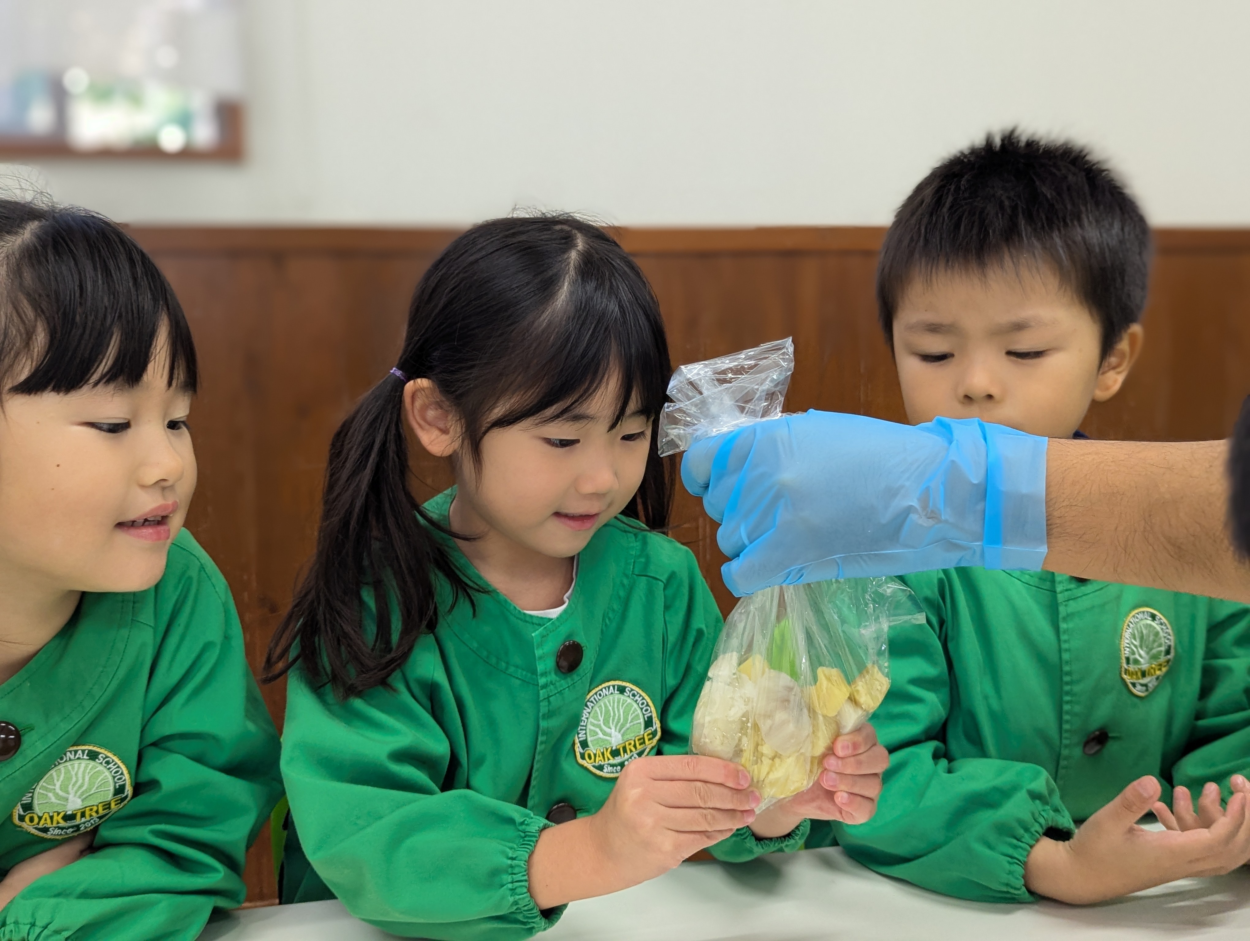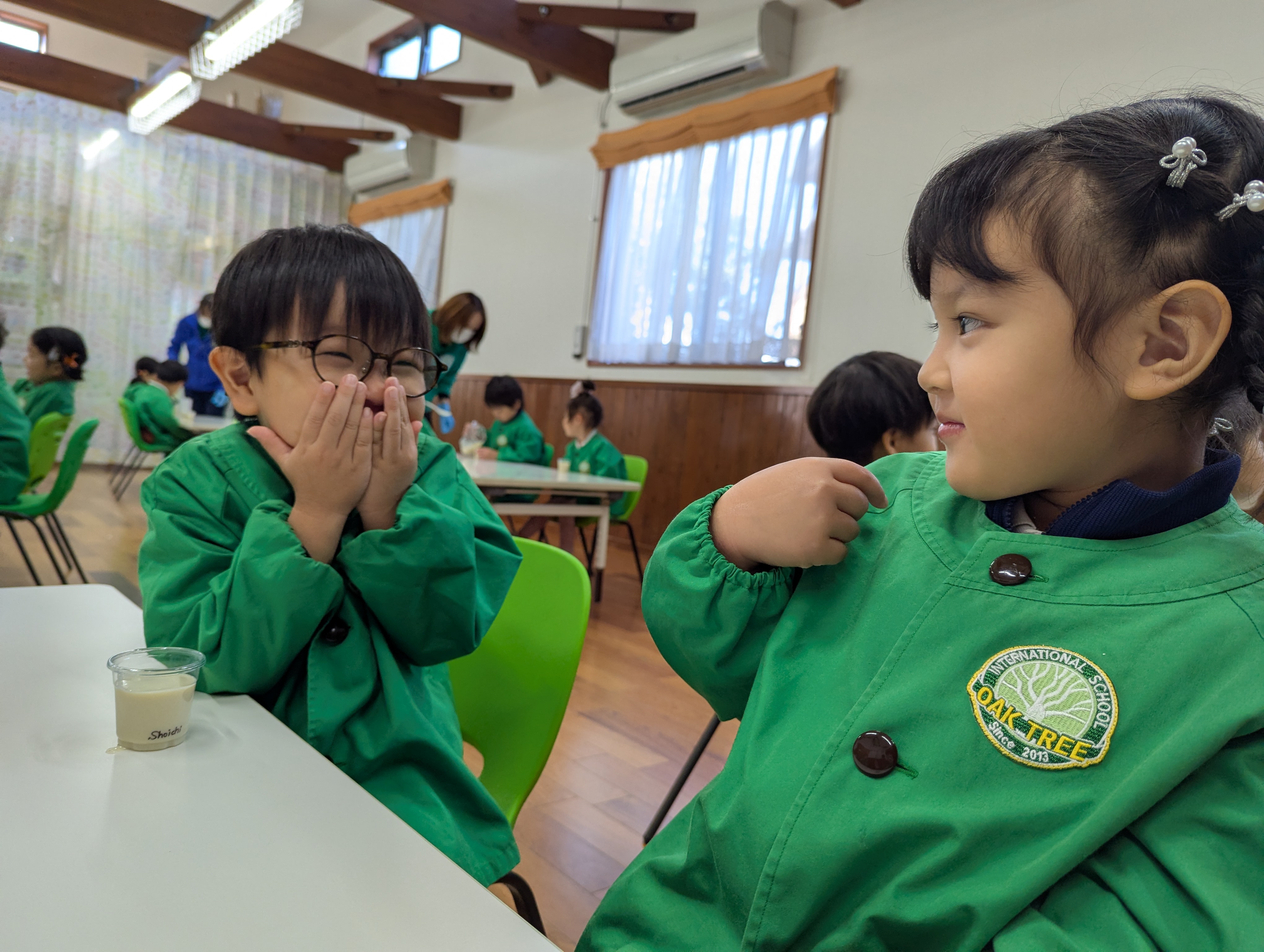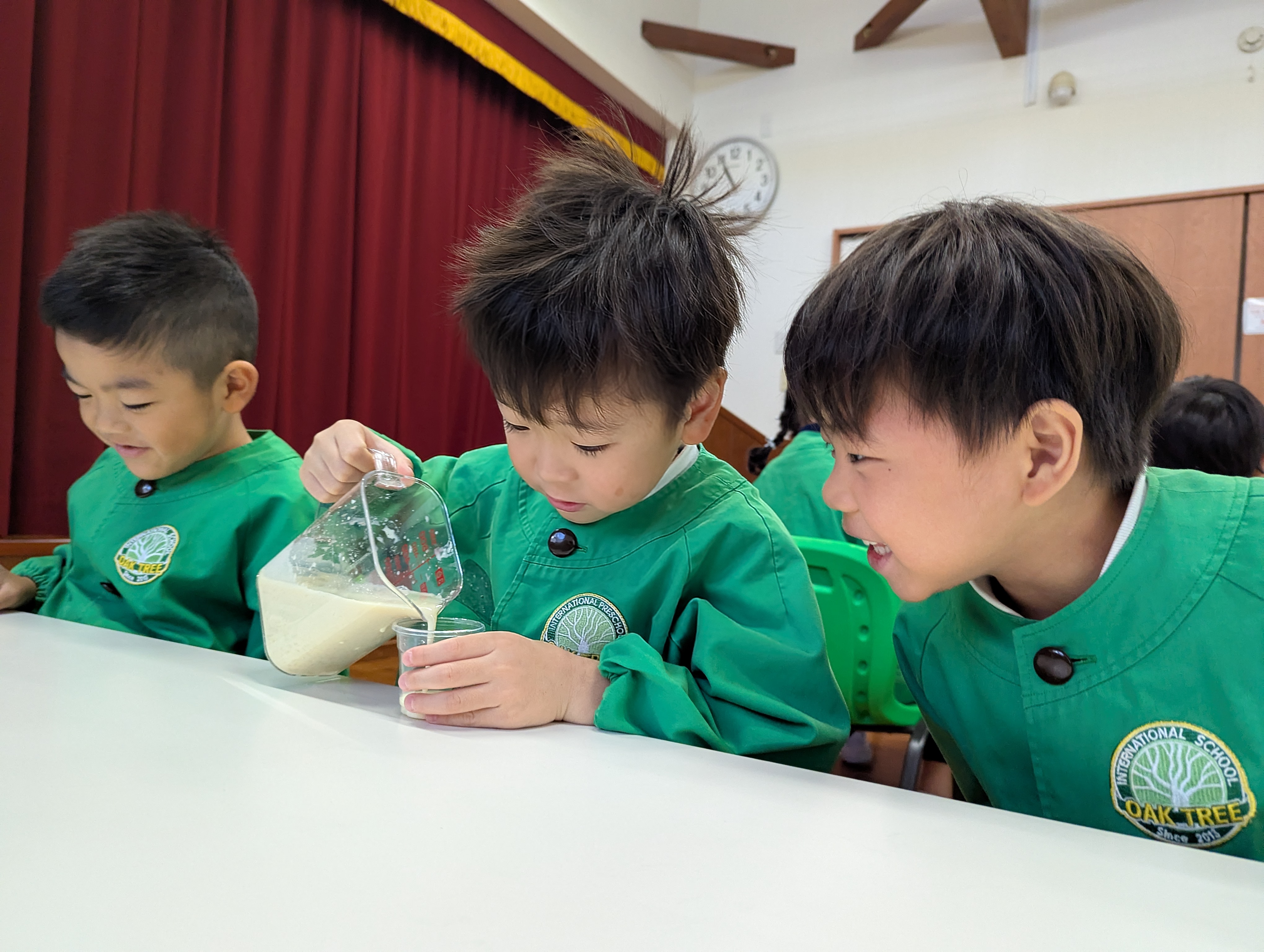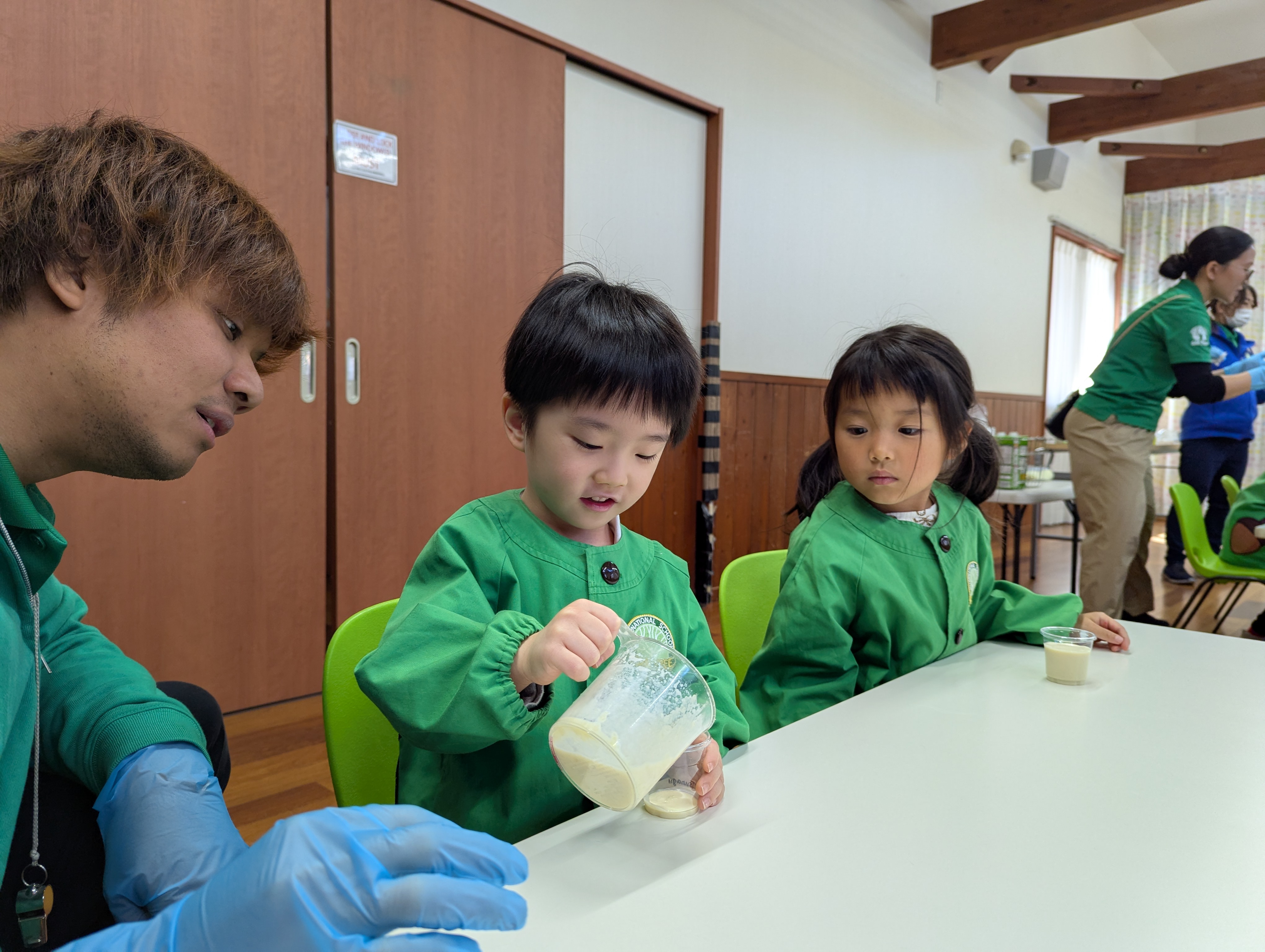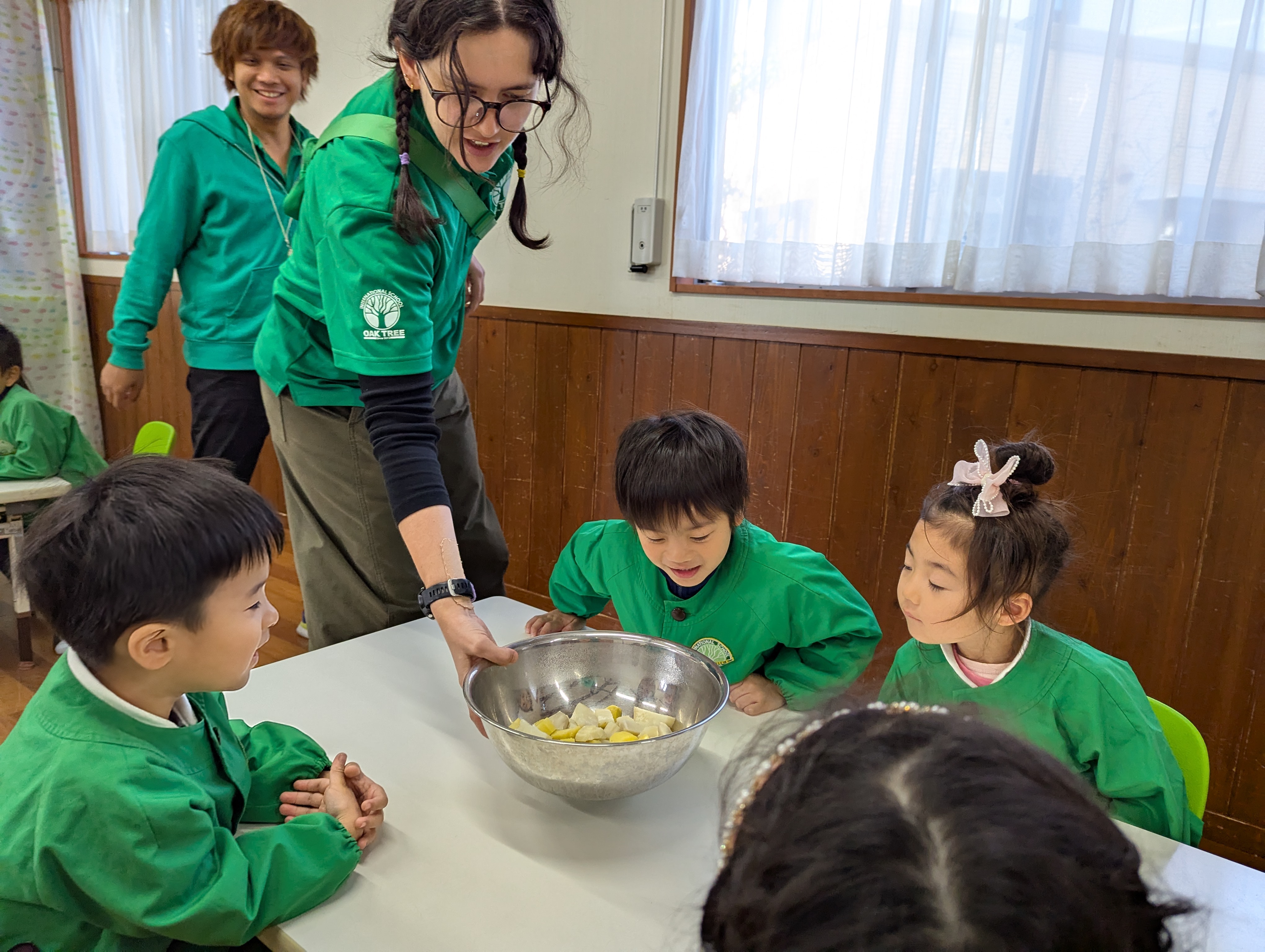 “It smells so good!” “I love pudding!” と、ワクワクしながらCookingに取り組む子どもたち✨